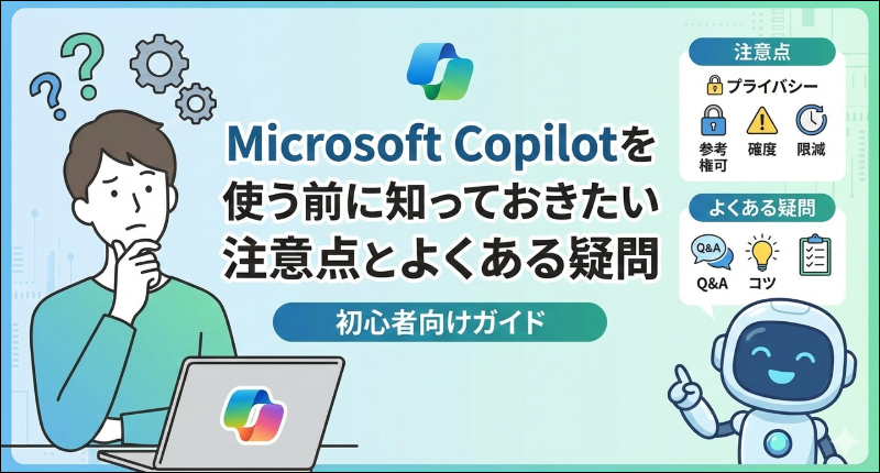 Microsoft Copilotを使う前に知っておくべき注意点とリスクを徹底解説。情報の正確性やセキュリティ対策、無料版と有料版の違い、商用利用時の著作権まで初心者向けにまとめました。AIに依存せず安全に使いこなすための必須ガイドです。